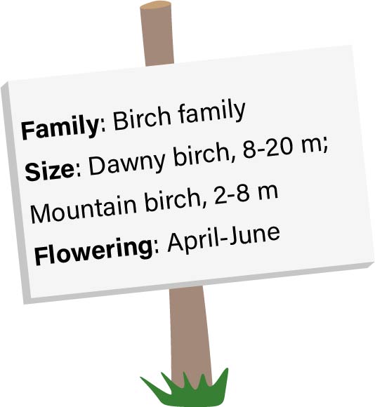 There are two different kinds of birch, which thrive in different areas. The downy birch is perhaps the most widely known and grown in the lowlands. The mountain birch is shorter and more crooked and grows near the mountains.