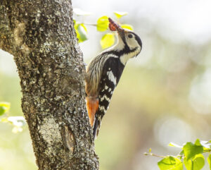 The white-backed woodpecker specializes in pecking out insect larvae from dead wood, preferably still standing, dead deciduous (broad-leaved) trees. Forestry is a threat to this woodpecker because trees are not allowed to stand until they die, and it has disappeared from Eastern Norway where it existed 40-50 years ago. However, the hilly terrain in Telemark and Agder offers better opportunities for steep deciduous forest slopes not to be felled. In such places, the white-backed woodpecker finds good living conditions.