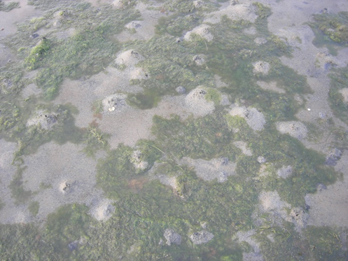 The animals that live in the shallow marine sediment bottom are usually partially or completely buried in the bottom. It is common to find mussels, bristle worms and small crustaceans here. Algae (seaweed) is sparse and often loose on the bottom or attached to small stones and shells. Examples of brown algae commonly found are spiral wrack, Norwegian/knotted kelp and toothed wrack. Among the green algae, grass kelp and sea lettuce can be found.